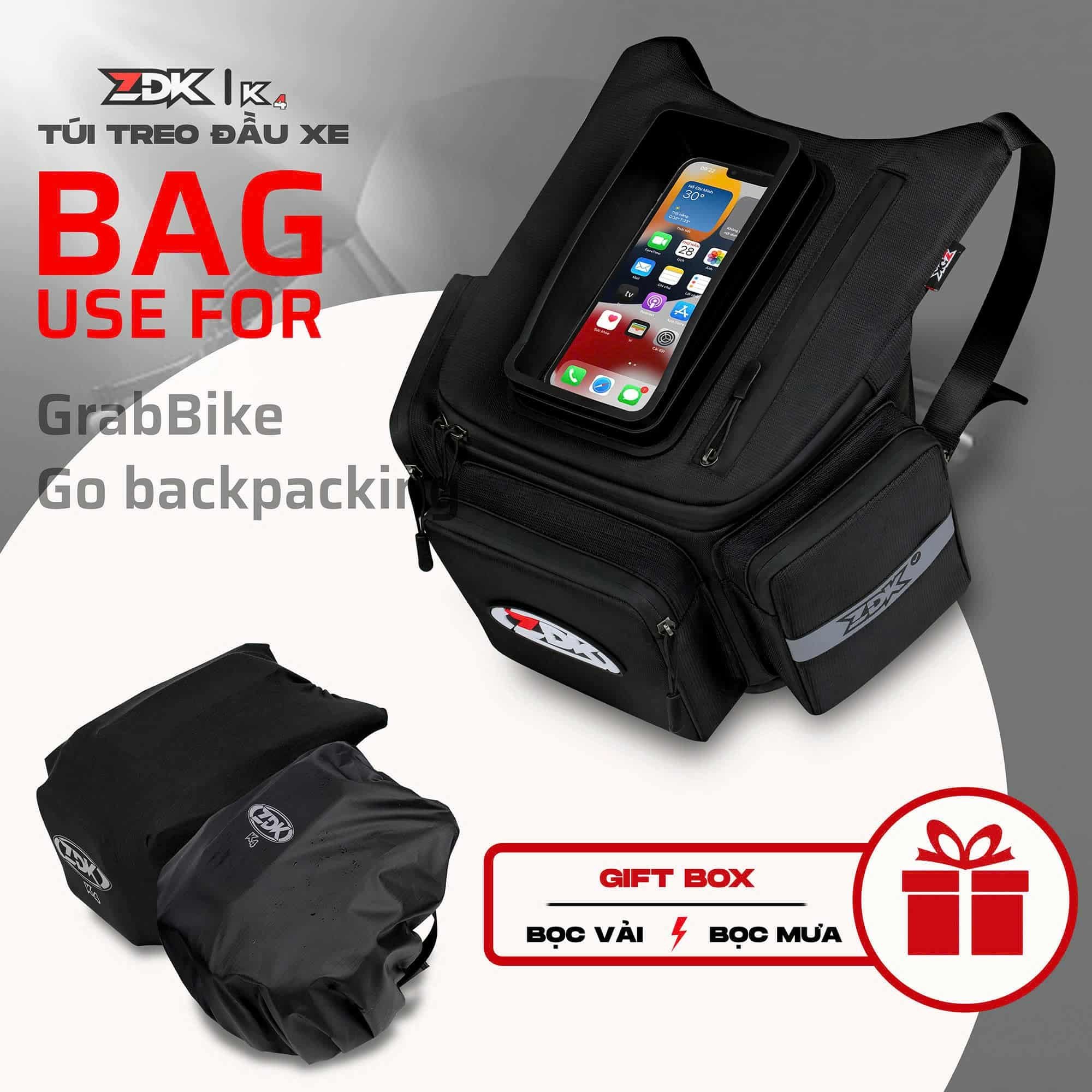 – Túi ZDK K4 được tặng kèm 1 bọc đi mưa có thể sử dụng khi mưa lớn